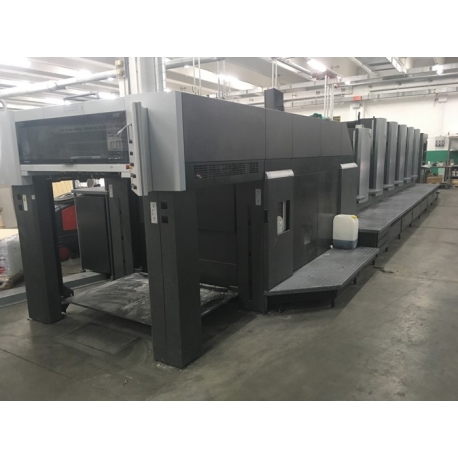 - Ausstattung:CP2000: console for monitoring and control of the machine CP2000 Master Level: software license CP2000 Color Assistant: examines and optimizes all camera settings color CP2000 Instant Gate: online transfer of data from Prinect Prepress Interface to the Print Center, combining the functions of PresetLink and ManagementGate Preset Plus Feeder: new feeder with single tape aspiratedSteel plate on feederIonizatorsAntistaticElectronic control of double sheetsElectronic control of the sheet missing Pointing tape aspirated PhotocellsAutomatic ink regulation from CP2000Ink temperature controlAlcolor VARIO: dampening with speed compensationRefrigerator Technotrans with AlcolsmartAutomatic Washing of blankets, rollers and impression cylinders Autoplate: semi-automatic plate change Circumferential, assial and diagonal registersVarnish unit with TRESU systemPreset Plus Delivery: new delivery conceptX2: extended delivery with two modules (160 cm) and dryersPowder spray Weko AP262IR + Hot air combination dryersSteel plate on deliveryAirStar: centralized and soundproof cabin for the air pumps ScrollStar: Atlas Copco compressor CombiStar: inking unit temperature control Technotrans CAN and AlcolSmart, metering device of isopropyl alcohol (IPA) Drystar 3000 Combined IR / hot air PowderStar: device that optimizes the powder sprayRefrigeration Water-cooled